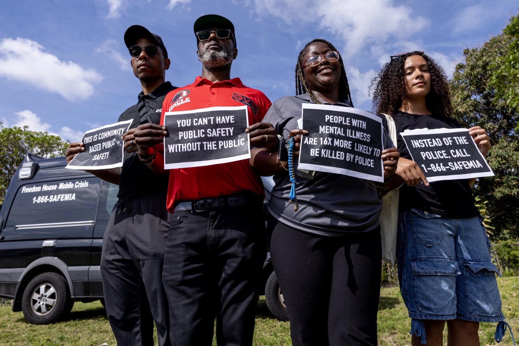 Run by Dade County Street Response (DCSR), the Freedom House Mobile Crisis Team sends trained medics, therapists and crisis interventionists who focus on listening, de-escalating and connecting people to care — all without involving police. Unit members function as both hotline call-takers and outreach workers, providing direct support to callers and people they encounter on the street. Team members conduct on-site assessments, prioritize medical emergencies, develop safety plans and connect people to resources with the goal of avoiding involuntary psychiatric commitment under Florida’s Baker Act whenever possible.