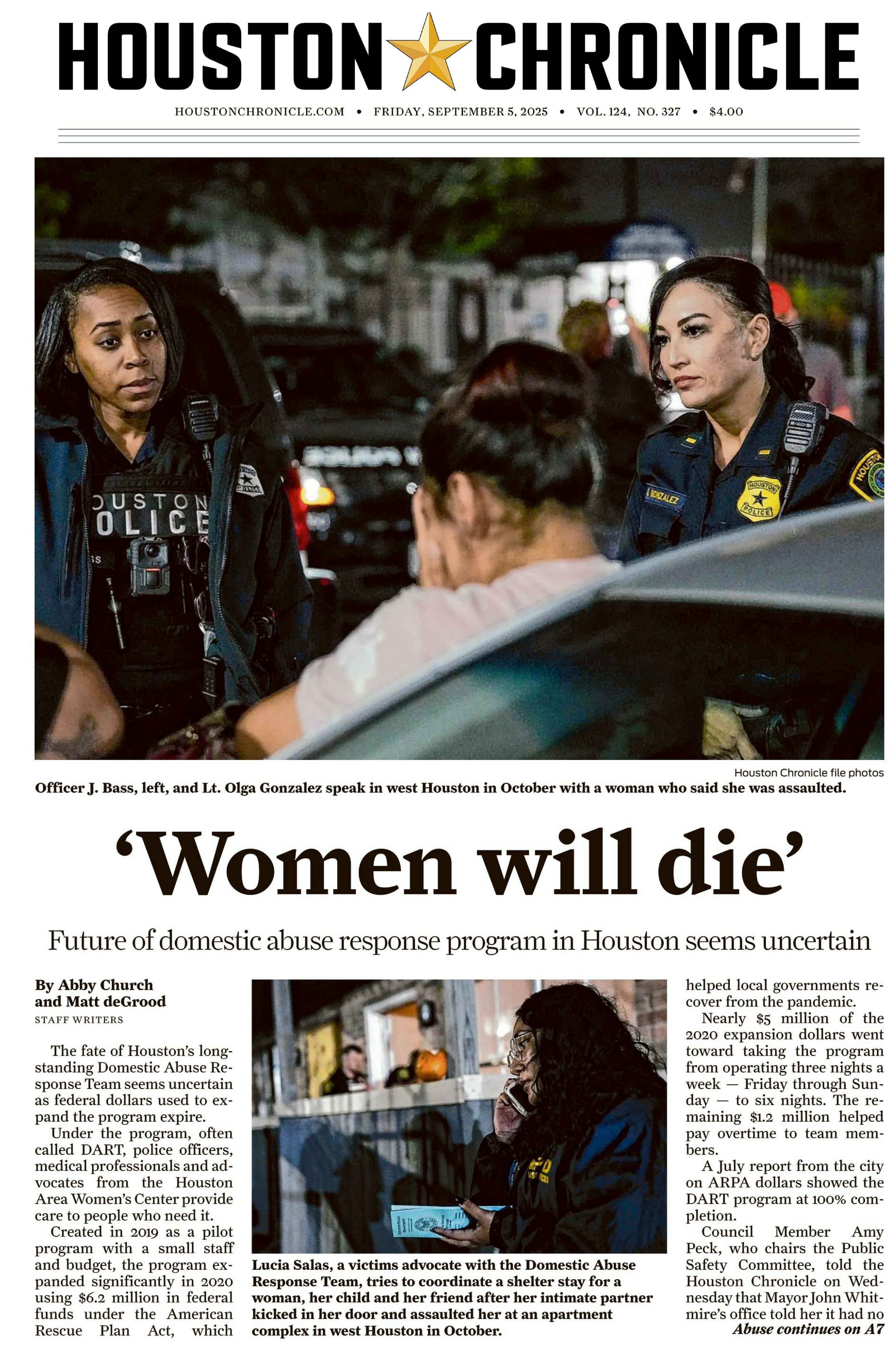HOUSTON - 'Women will die:' Houston's domestic violence response team faces uncertain future as funds run dry (Houston Chronicle)